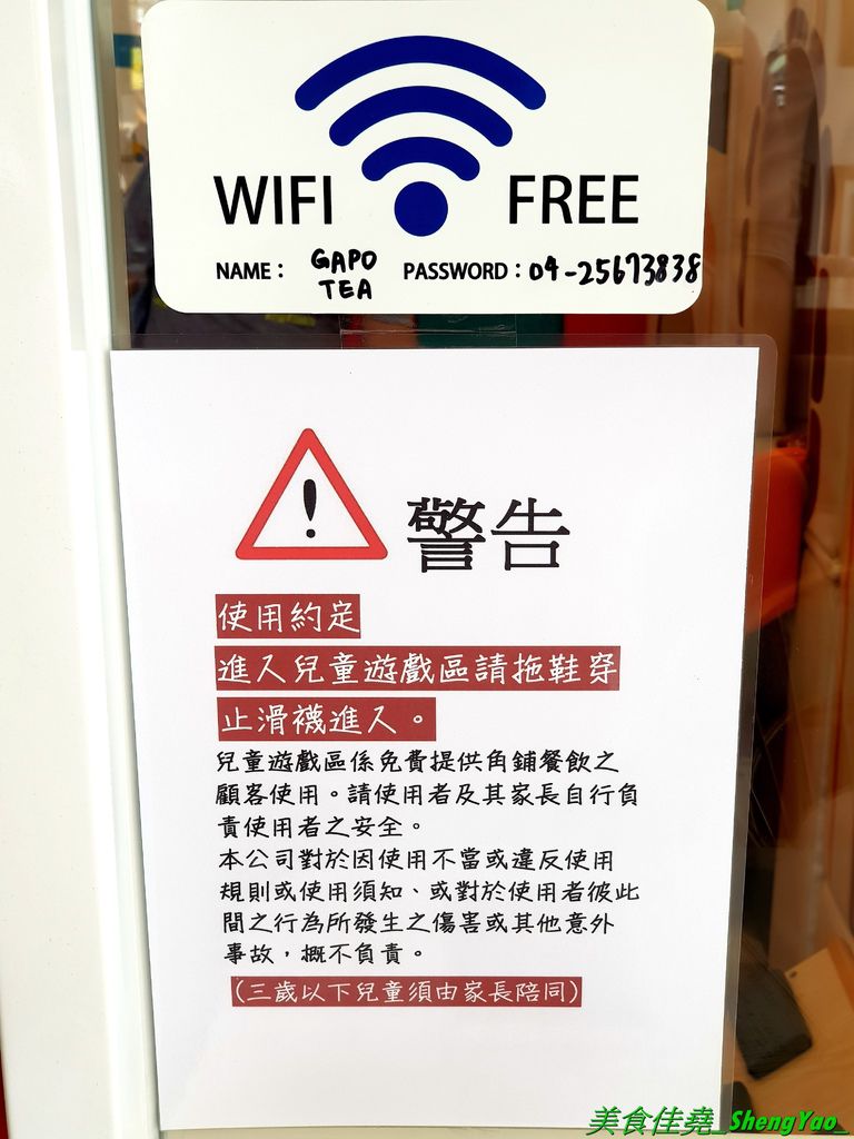 "Gapo tea角鋪"可以說是相當特別的一間手搖飲料店,顛覆一般手搖飲料店買了帶走的既定印象,結合了咖啡廳和親子餐廳的元素,讓原本不常喝手搖飲的媽媽們也可以帶小孩子來這裡,不過有利也有弊,對於想要來這靜靜喝飲料的人來說會覺得小朋友吵雜聲太過強烈,尤其是大雅店空間不夠寬敞,這感覺又格外明顯。另外店家竟然沒有充電插座和充電線,這點讓我很訝異,我覺得最少也該有個插座吧。