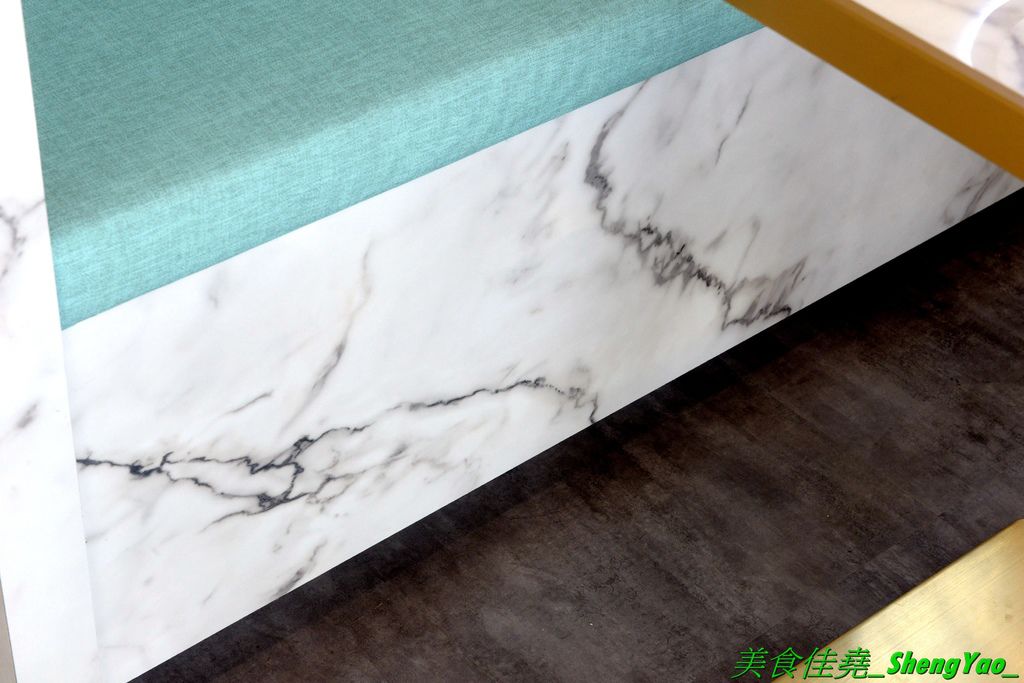裝潢整個以白色系為主,搭配上蒂芬妮綠的沙發和大理石紋的桌子,看起來相當清新優雅,不過不像台中文心店有兩層樓,大雅店只有一樓,空間明顯小一些,但是比起其他手搖飲料店還是有過之而無不及。